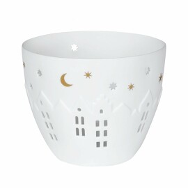 Красивые и уютные предметы декора выполнены из неглазурированного фарфора и имеют форму домиков с окнами, через которые можно увидеть огоньки свечи.